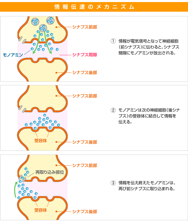 原因がはっきりと解明されていないものの、社交不安障害を発症している患者においては、神経内分泌学的見地からの研究によって、セロトニン、ドーパミン、ノルアドレナリンなどの神経伝達物質が不足していることが分かっています。セロトニンやドーパミンなど、脳に存在する多くの神経伝達物質は、私達がもっている意欲や不安、喜びなど様々な感情を調節しています。何らかの理由で、この神経伝達物質のバランスが崩れると、不安を感じやすくなるのではないかと言われています。